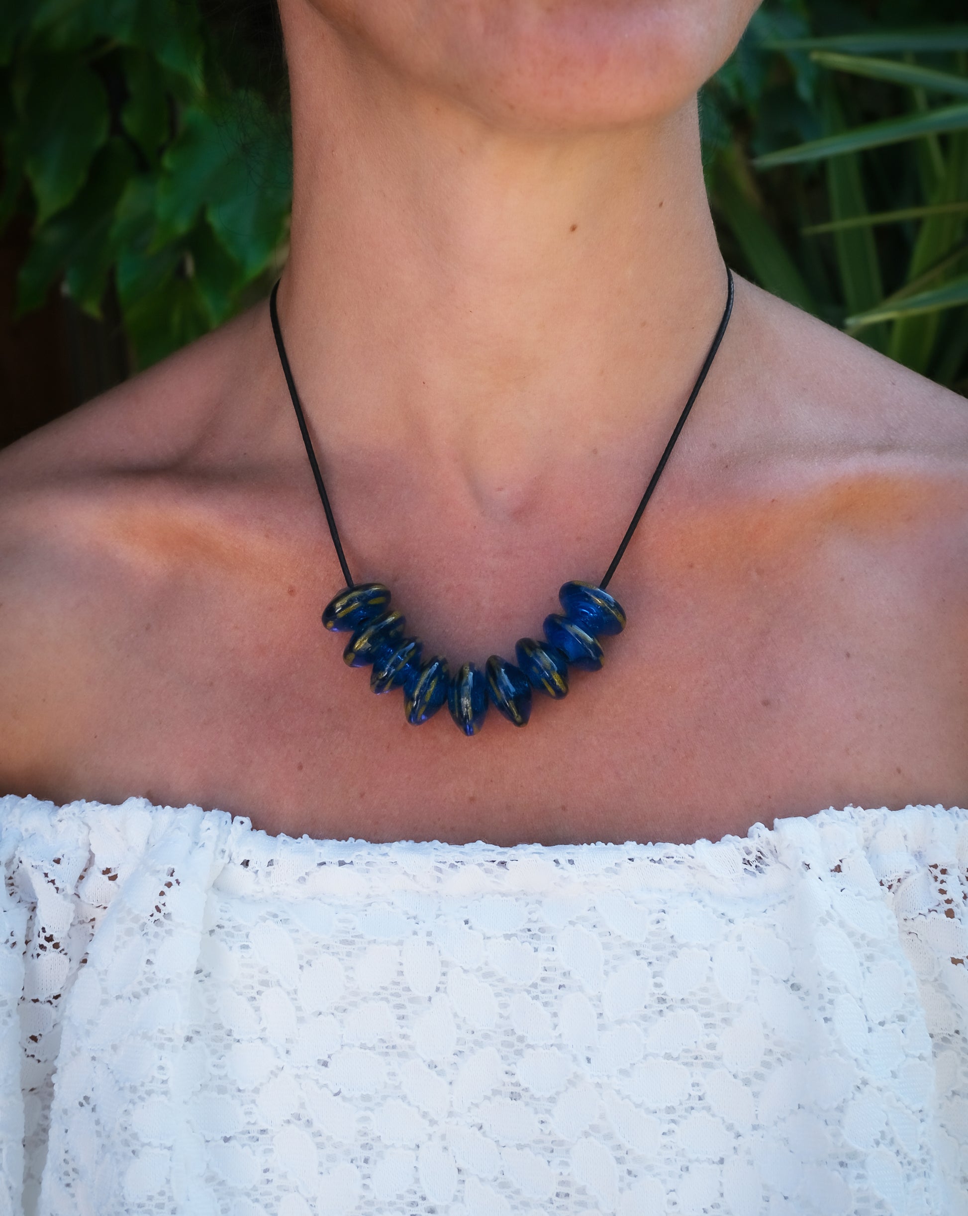 Collier en verre de Murano bleu nuit