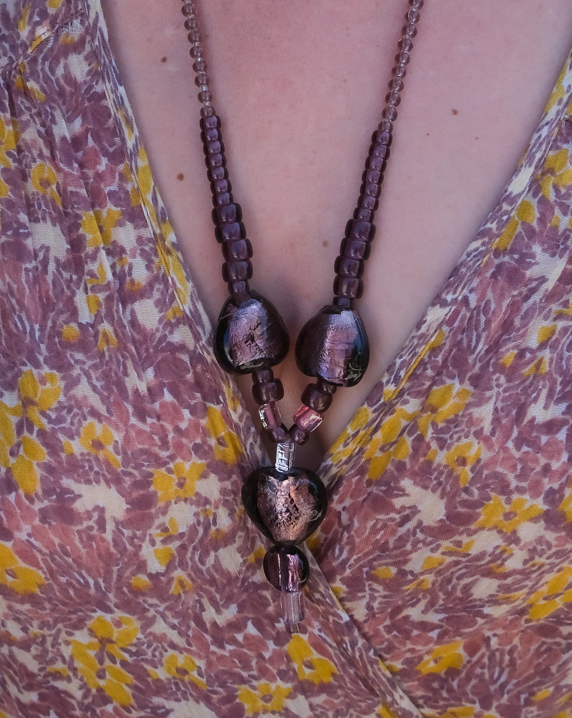 Ce collier Améthyste se distingue par son subtil mélange de nuances violettes et roses, apportant une touche de raffinement à toutes les tenues. Les perles, délicatement façonnées en verre de Murano, capturent et reflètent la lumière, créant un éclat élégant et sophistiqué.