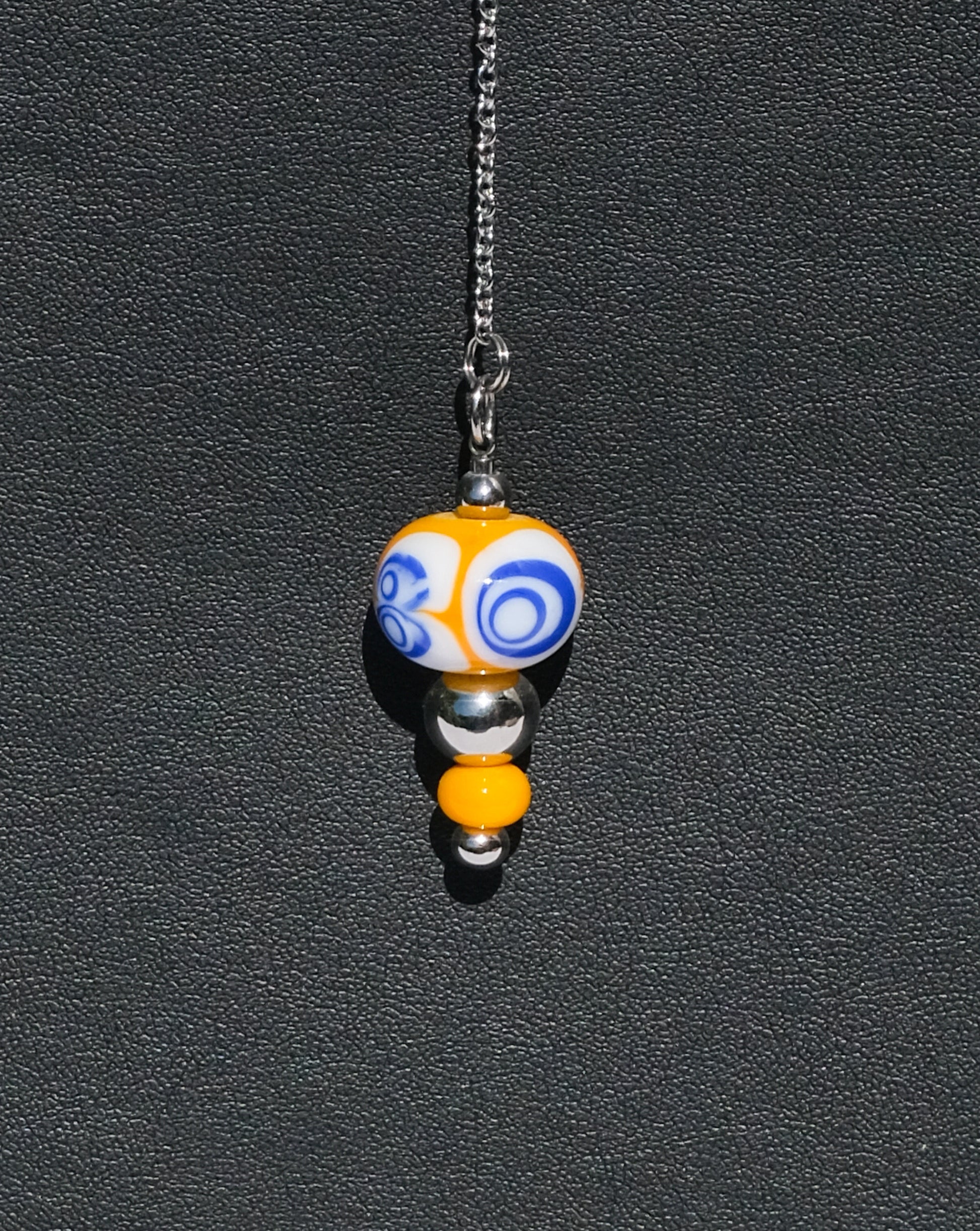 Ce pendule vibrant jaune et bleu est un objet unique. Ses motifs géométriques et ses couleurs éclatantes captent l'attention et créent un équilibre visuel parfait. Il est idéal pour ceux qui recherchent un pendule fonctionnel avec une touche d'originalité.